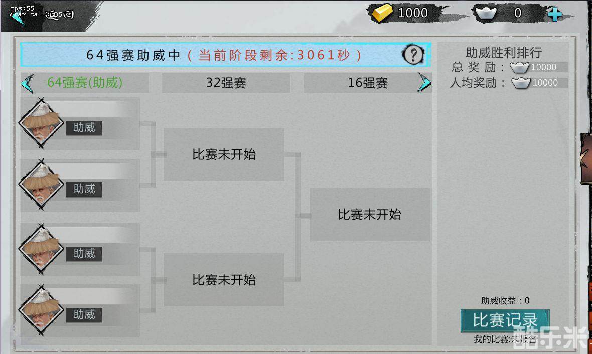 在助威界面右侧是助威排行榜,可以看到当前助威排行,助威猜对场次最多的玩家可以获得10000银锭奖励,多人并列第一则平分奖金。完全不需要肝,动动手参与助威就可以获得10000银锭,真是躺赢的人生啊!!