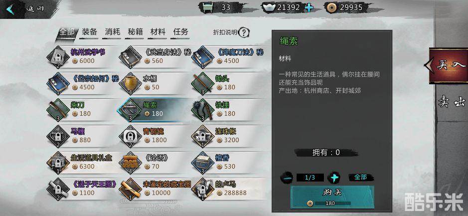 这是最直接的方式,在江湖的五大主城的商人那里都可以买到各种材料,优点是方便快捷,缺点就是主城卖的材料需要铜币且高级的材料还需要主城好感,在游戏前期还是要根据条件来选择购买;