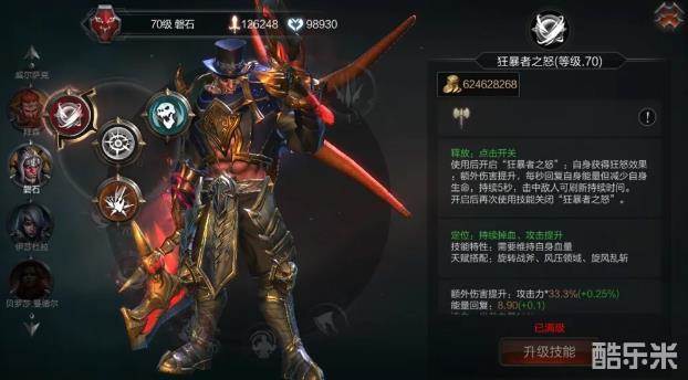 技能:野蛮护甲+旋风斩+战吼+狂暴者之怒