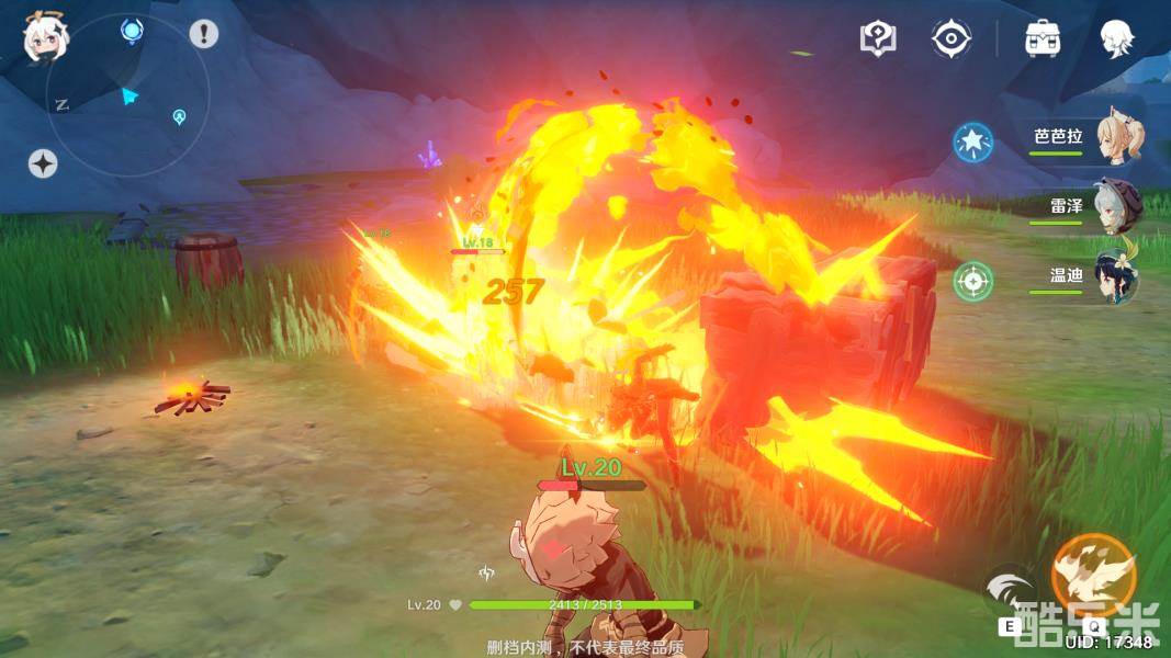 芭芭拉上场E开光环 → 雷泽上场A-E削防御 → 香菱上场E放熊猫 → 迪卢克上场站到火里等到熊猫消失然后Q-E-AAA-E-AAA-E → 雷泽蓄力E-A补伤害