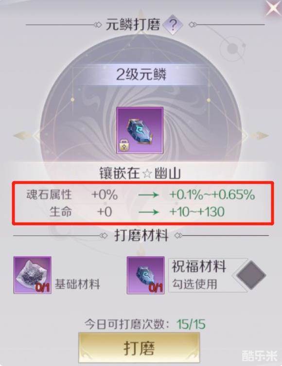 有一项提升魂石属性和生命加成的功能要掌握,这就是元鳞打磨。