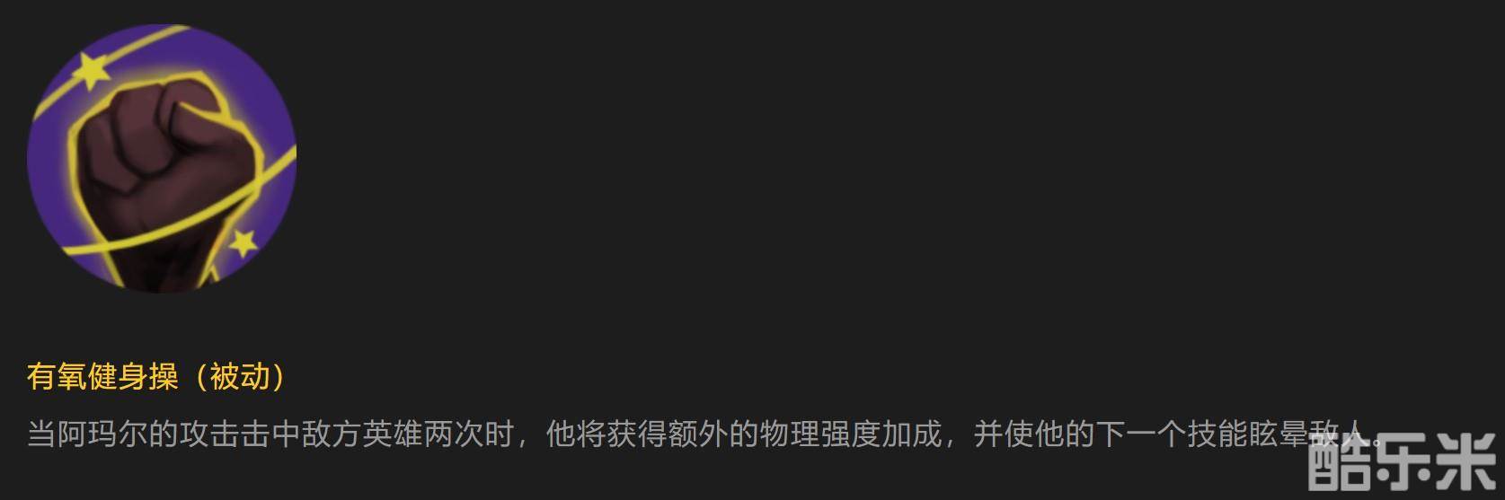 骄傲自负的阿玛尔,曾经是一名摔跤选手,在摔跤场上难以找到对手的他,后来又成为了一名佣兵,在战场中寻找自己人生的意义。现在,他又来到了《虚荣》的战场上,寻找新的对手。他的技能有氧健身操、超级重击、折颈阻拦、公牛推土机能够在短时间内重创对手,甚至让对手眩晕。敢于阻挡他的对手,也将被他强大的冲击力所击倒。玩家还可以通过他的天赋——银河冲拳、痛苦列车、公牛之怒来提升他技能的战斗表现力,使其在战斗中更具爆发力。