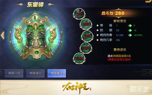 《太古神王》手游东皇钟神器重铸任务今日上线,步入神阶后你将看到仙域更多精彩,快来获取远古神祇东皇太一的隐藏神力吧!