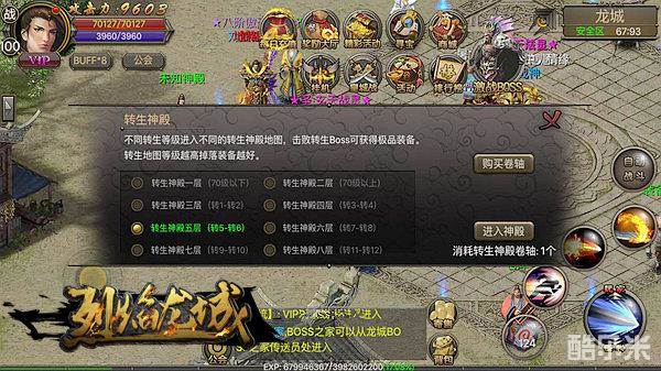 据悉,玩家们不同的转生等级,可以进入不同的转生神殿地图,击败转生BOSS可获得极品装备,转生地图等级越高掉落装备越好。