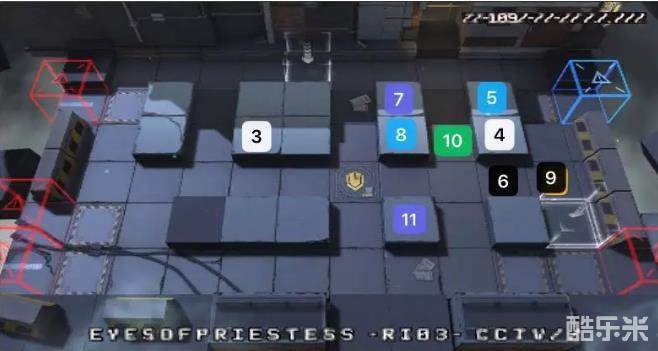 这个时候左边的先锋应该已经可以开启技能,回费之后再4的位置上朝下放狙击。等待费用足够在5的位置上朝下放单体医疗。