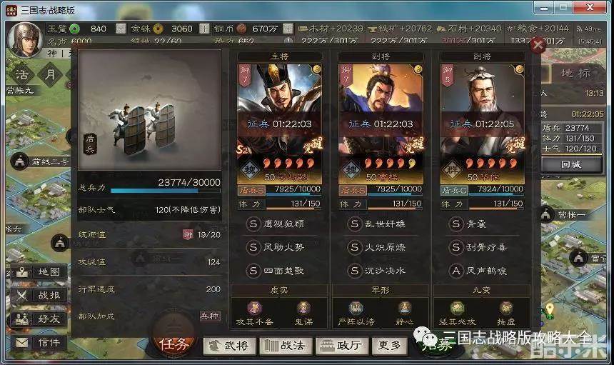 这套司马懿盾兵,放弃了藤甲的减伤,主攻内战。带了足够多的AOE伤害,每人一个火技能,就是专门打内战藤甲克星,内战基本稳赢,4-5回合在对面发力期结束战斗。有人会问,为什么上华佗你不选择曹仁,因为放弃了藤甲,所以没有上曹仁的必要了。如果你坚持用藤甲,用曹仁也是没问题。