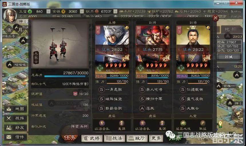 这套控制力度还算充分,稳定极高。目前因为没有枪兵,选择大戟士弥补伤害,如果想盾兵和枪兵切换,刘备可以选择带义心昭烈。(为什么说这队叫养家支柱,熟悉我们开荒业务应该知道,我们追求稳定性和快速发育,这队从第四天开始一直可以用到你把其他队伍全部养起来,开荒打地最稳定的选择),尤其在前期大家等级还没起来的时候。这队都可以靠等级压制完成各种1穿5-10的壮举。成型快,撞州和进资源州打架首选,游击军也是前期顶梁柱。