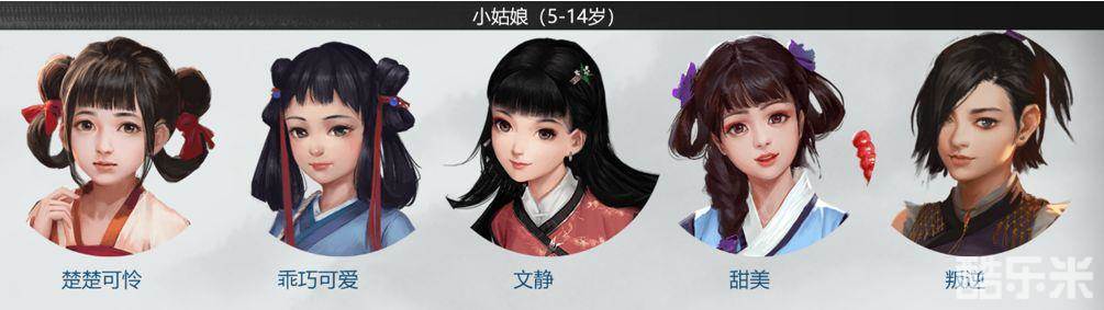 然后针对小姑娘,美术师兄还做了五个性格面相方面的设计,如下图: