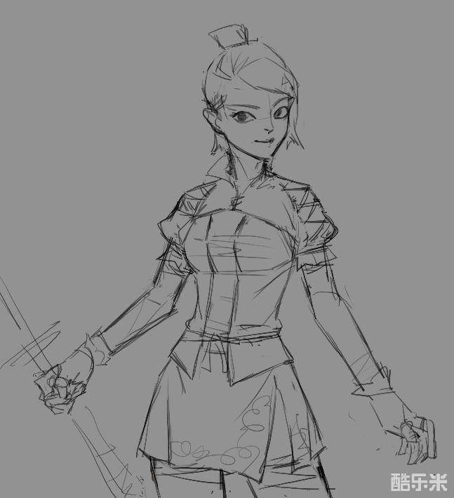 根据策划师兄的设定,倪飞绫这个角色很阳光、精悍,根据这个设定,美术师兄的草图设计让她的头发扎起来、眼睛大大的。服装是便于行动的短装。也是六扇门里唯一的妹(fu)子(li)。