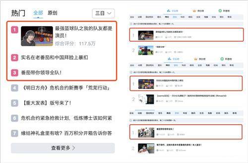 《热血街篮》手游的火爆还吸引到了三位B站头部UP主——老番茄 & 中国boy & 某幻,这三个好朋友组建了“最强街篮队”前往游戏进行试玩,一起挑战各路大佬路人战队。目前,老番茄等三人推出的《热血街篮》试玩视频已连续三天霸占B站游戏热门视频排行榜,总曝光量高达600万,弹幕疯狂刷屏,吃瓜观众好评如潮,带动大批量粉丝加入游戏。对于视频中所展示的高质量街篮玩法,B站用户纷纷表态已三连,并将持续关注活动后续。试玩活动不仅再一次提升了《热血街篮》在年轻玩家群体中的曝光量和关注度,也为《热血街篮》优质口碑的传播打下了良好的基础。