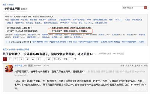 作为国内影响力巨大的体育社区,虎扑拥有天然的用户属性优势。《热血街篮》手游为了更好地和广大篮球爱好者交流,邀请到了茶丽、亿元亿元和篮球少女哎哟喂三位高人气的虎扑篮球女神入驻《热血街篮》在线陪玩,全方位展示游戏的百变换装、自由连招等玩法,让球友们深入了解《热血街篮》世界的魅力,吸引了大批篮球爱好者盖楼讨论。幸运玩家不仅能和虎扑女神组队玩游戏,还有机会抽取限量AJ,这样的福利活动大大刺激了用户的参与度,当晚有超过800位JR在话题贴下互动,还有不少幸运JR得以在游戏中和这三位女神热情互动,这样好玩有趣的活动页引爆了整个虎扑社区。
