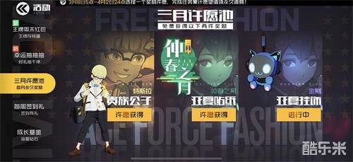 截止至4月2日24点,玩家可以参与“三月许愿池”活动,从时装-天才少年·特斯拉(奖励30个时装碎片可激活1星时装)、贴纸-重盾·仲春之月、饰品-重盾·金刚这三个奖励选择两个作为愿望免费获得。许下愿望后,玩家完成对应的活动任务即可积累愿望值兑换奖励。此外,3月20日至3月27日活动期间,玩家可以限免体验选手“穷奇·杨林”和“镭射·路易斯”。