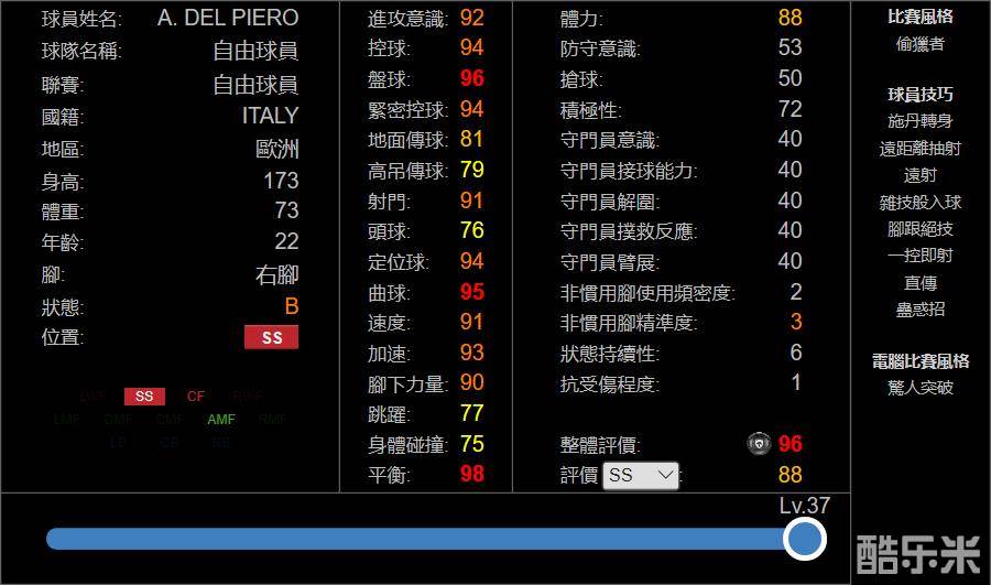 《实况足球2020》完美还原了皮耶罗的现实特点,全面而均衡:控球94、盘球96,皮耶罗将在禁区闪转腾挪,如入无人之境;速度91、爆发93,让他能够以速度优势生吃对手一骑绝尘;定位球94、脚下力量90,也让他主罚任意球时像点球一般轻而易举。更重要的是,《实况足球2020》搭载的虚幻4引擎与独有的AI技术,既能够在游戏中展示皮耶罗的真实建模与动作特点,又能够让皮耶罗的大局观在游戏中得以展现,昔日传奇近在眼前!