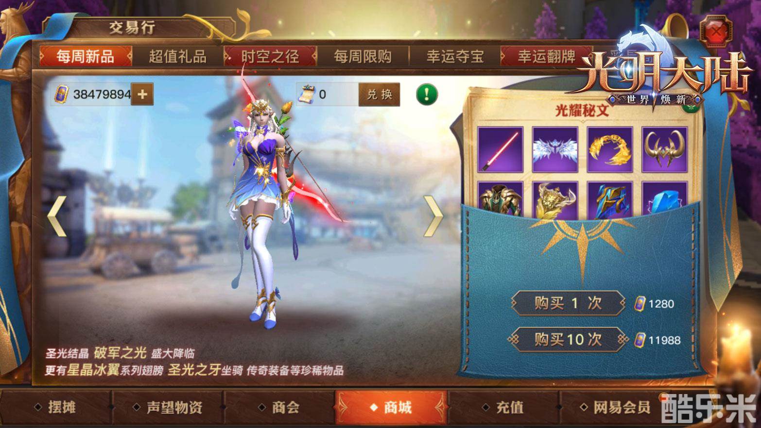 勇士每次购买“光耀秘文”即可获得1个积分道具,积分可以兑换“破军之光”武器时装等珍稀道具。