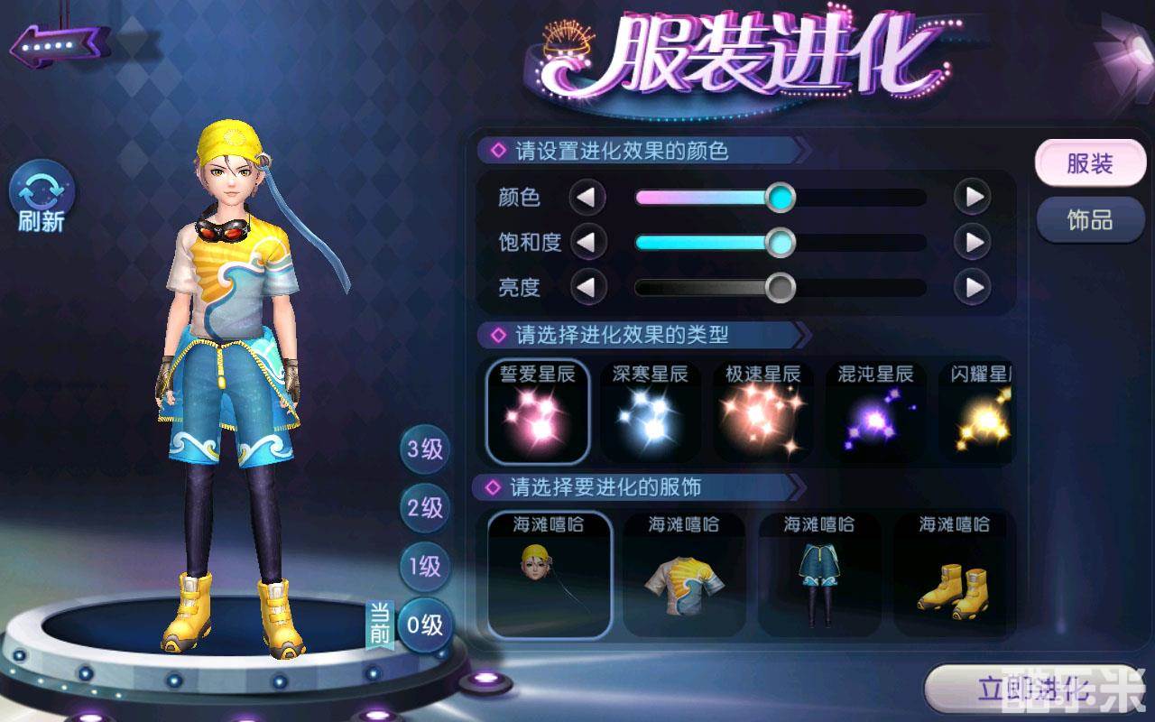 而【海滩嘻哈】的男款服饰上身为印制了贝壳与海浪图案的纱质透视T恤,黑色紧身裤外还搭配了蓝色轻纱短裤,加上环扣飘带的纯色鸭舌帽装饰,整体简约又时髦。本次【海滩嘻哈】的新表情瞳色采用了冷暖相对色系,男生新表情的瞳色为暖色月牙黄,透亮神飞;女生新表情的瞳色为冷色猫眼绿,清澈嫣然。