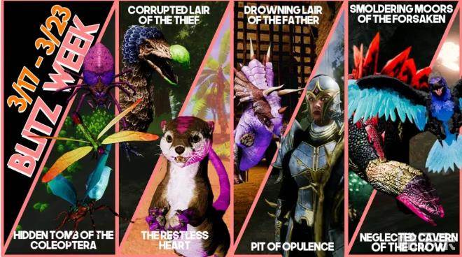 在联机模式当中,七个地牢按照日子依次是:昆虫迷墓、腐败贼窝、无限心意、埋没先驱、富裕矿井、阴燃荒地、乌鸦洞窟。这七个地牢难度各有不同,其中3月20号轮转的“无限心意”地牢难度最低,3月21号轮转的“埋没先驱”地牢难度最高,请各位探险者认真对待。在地牢狂欢周活动中,玩家通关获得的泰克能量元素提升,还是值得一肝的。