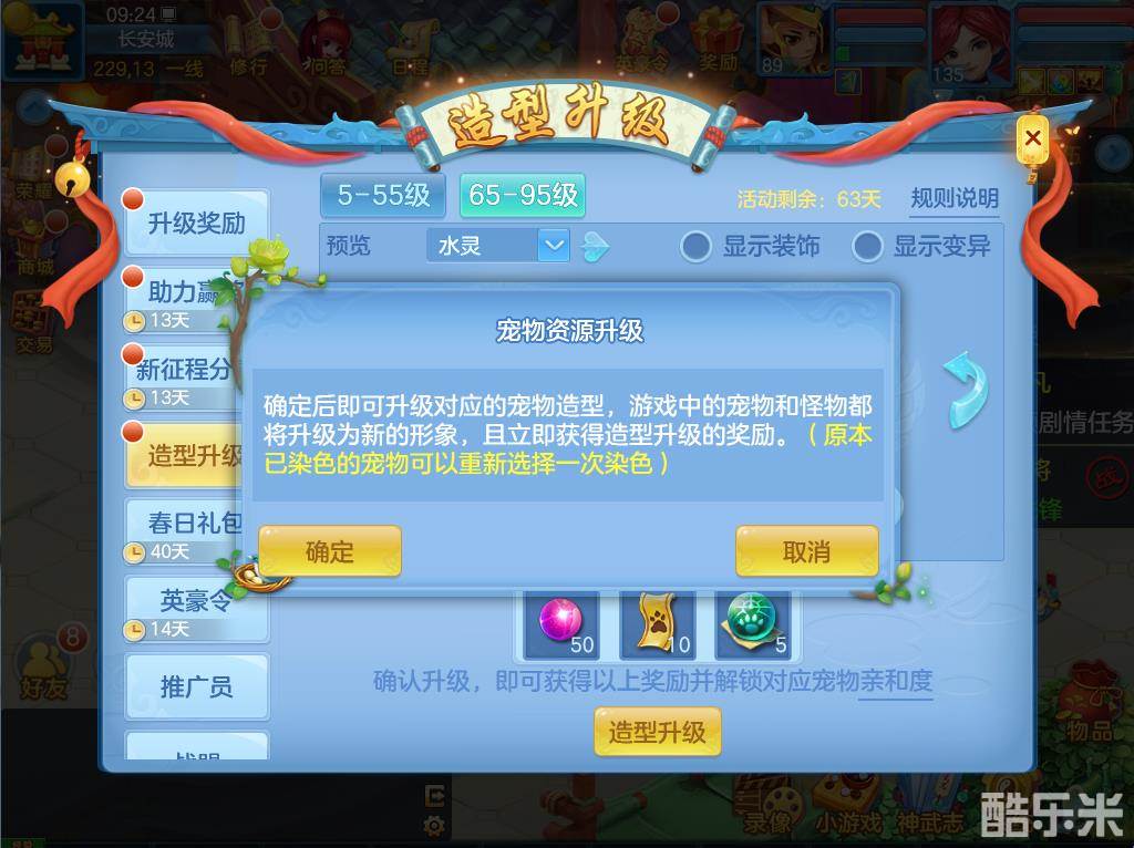 除新玩法、新活动正式上线外,《神武4》手游还将于本周维护完成后至5月22日09:00开放65至95级宠物造成升级活动。活动期间,诸位少侠不仅可以在奖励“造型升级”处预览宠物造型升级后的效果,还可以在界面上完成宠物造型升级,升级后对应的宠物、野怪与NPC造型都变为新版造型。