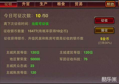 在征收的时候也是有一定的几率会获得威望的哦,征收是不需要消耗任何银币,相当于每天的福利哦,不过获取的数量也是有限的。