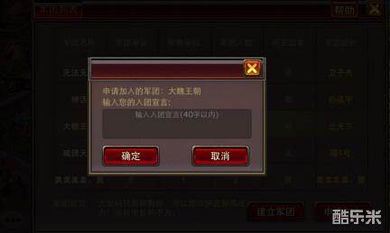 在数月的游戏经历中对军团战有了一定的认识和心得。首先需要申请加入一个军团系统,游戏里面有魏、蜀、吴三个国家,玩家只可以申请加入自己国家的军团,接下来就可以参加军团战斗了!