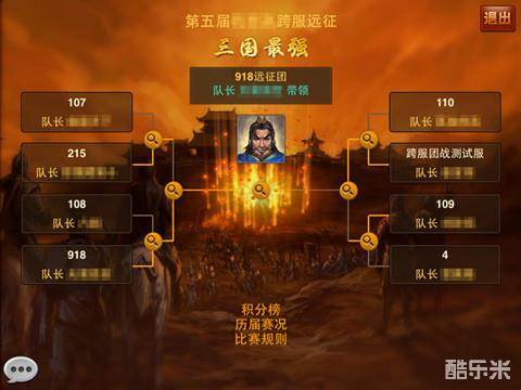 比赛历经好几个阶段,报名、海选、晋级赛,其中晋级赛分为16强、8强、4强、2强、跨服冠军!晋级赛采取5局3胜制,参赛的玩家朋友们可以随时更换并同步自己的武将布阵阵容,以达到克敌制胜的效果。