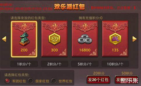 红包顾名思义就是发红包,玩家通过充值游戏就可以参与欢乐红包啦,前提需要你加入一个国家噢,所以还没有国家的友友们尽快找个喜欢的国家投奔吧!