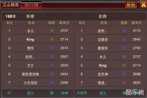 棋局结束后根据总分会自动给予一定的银币及魂石奖励。每年都会为大家记录当年棋局的获得的最高分,并根据分数进行服务器排行,排行前50名的小伙伴将会获得排行的额外奖励。