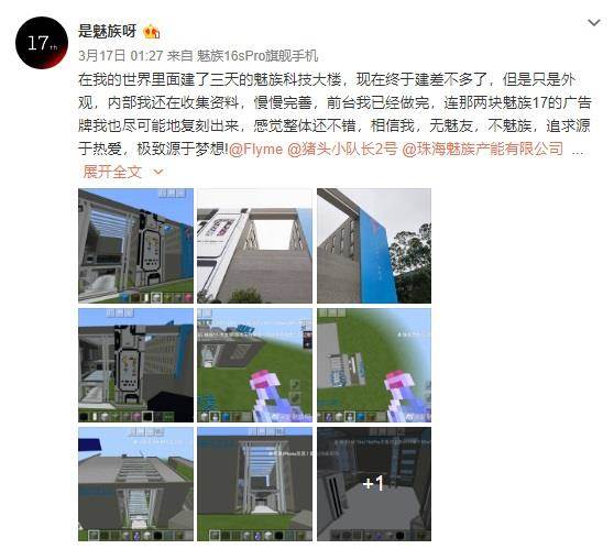 3月20日消息 近日有一位“硬核”魅友在《我的世界》里复刻了一栋魅族科技大楼,这座虚拟的大楼各项细节均十分完备,包括魅族17广告均有所呈现。