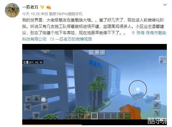 对此魅族科技官方也称赞这座《我的世界》版魅族科技大楼是“像素级”复刻,同时魅族科技助理副总裁@一匹老万今日也公布了这栋“大楼”的最新“施工进度”:“盖了好几天了,现在进入软装绿化阶段。听说又有几支施工队挥着鼠标进场开建,监理围观很多人。小区业主温馨建议,别忘了给建个地下车库哇,现在地面早就停不下了。”