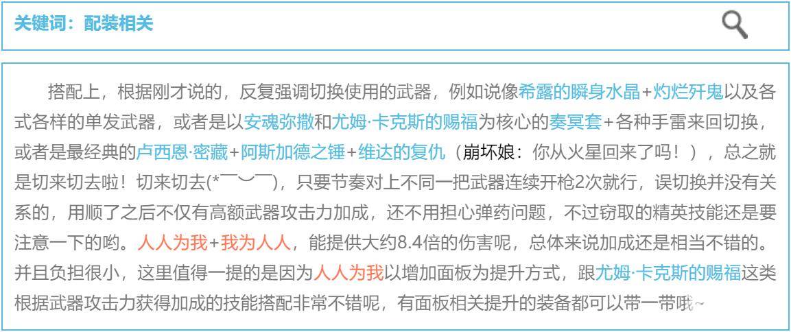 说正事,就是切换武器后,提高120%全伤害,持续1秒虽然时间有点短,不过一直切就不是问题啦!还是适合那种需要切换使用的武器搭配