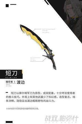 今天为大家介绍的是战双帕弥什渡边·夜刃,渡边·夜刃作为近战类型的角色,和露西亚定位不同,露西亚作为女主角她的定位更倾向于战士,迅捷极速的战士。