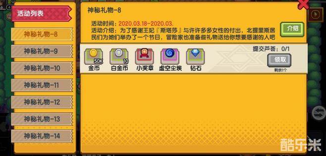 伊洛纳神秘礼物8-14都是什么,让玩家们万分蛋疼的神秘礼物任务再次更新,本次更新了神秘礼物8号到14号,想要知道这次的活动都会有什么奖励吗,想要知道新的活动需要哪些限定道具吗,本期攻略一定别错过,一起来看看具体要什么材料吧,奖励很不错哦!