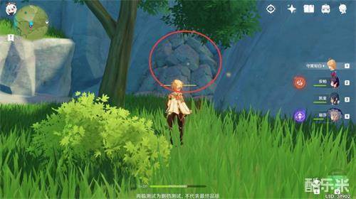 2、实际上,如果没有对应的提示,那么剩下的一个精灵将是玩家的噩梦,将没有任何的机会找到。这是为什么呢?简单来说,最后一个精灵隐藏的位置非常之深,被大量的石头覆盖。玩家不妨前往左侧的山脚下方,并找到有多个集石的地点。如此后续借助角色的攻击可以将之打碎,并直接带来高额的收益。