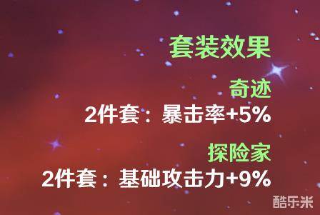 但是明显能够看出来这个东西4件是不划算的,2件的收益才是操作高的,因此奇迹套装建议搭配我下面将要推荐的爆伤套装食用更佳。