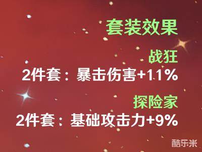 探险家套装:2件+9%基础攻击,4件+13%的基础攻击
