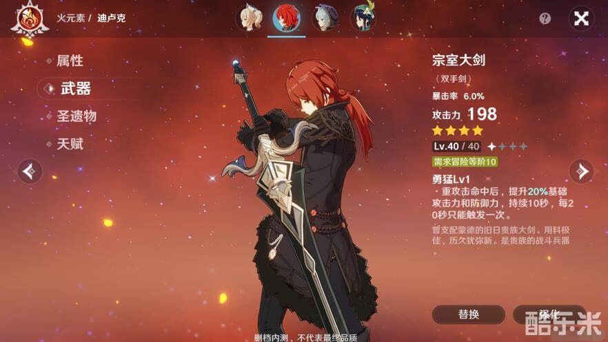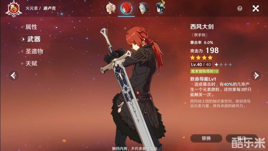 所以入股玩家们想要使用这把武器的话,就需要搭配上一套增加暴击的圣遗物套装,但这样的话,迪卢克火属性攻击打法会变为另外一种流派的打法,不知道玩家们是不适应的过来;