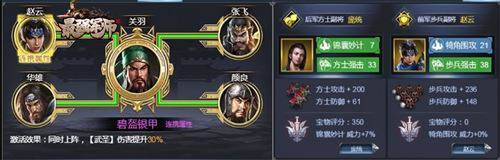 ②副将携带宝物评分,携带的宝物强化等级越高,宝物越好,威力加成越多,伤害越大!