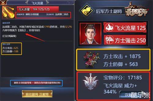 ①副将主动技能等级,主动技能等级越高,技能伤害越高。