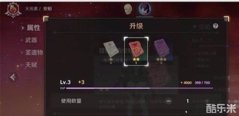 使用经验卡升级安柏等级