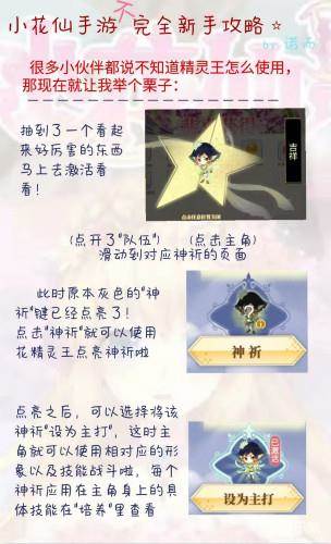 接下来,就来看一下由《小花仙》手游官方同人团魔法学院成员诺而提供的攻略吧!精灵王神祈的使用