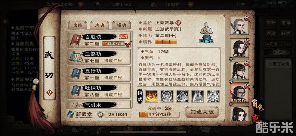 因为有很多强力的内功可以代替血煞功,比它更好加成更多,大家也不要太过于懊恼没什么好吃亏的,另外游戏中的保存功能一定要善于利用,在开打之前先保存一下。