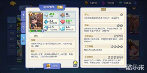 变熊:当敌军距离自己2格以内时变成巨熊,并提高攻击力、血量