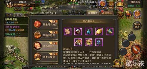 2、开心幸运儿:开服活动期间,盟重活动大使为每一位玩家准备了一张专属幸运彩票,内含绑定声望令*10,玩家每天登录游戏,不但可以感受到幸运彩票带来的好运,还有更多的奖励和称号等你来拿。