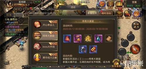 3、传奇大家庭:开服活动期间,加入行会成为传奇大家庭的一份子,不但能够结识更多的战友和兄弟,还有大量的礼物赠送哦