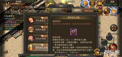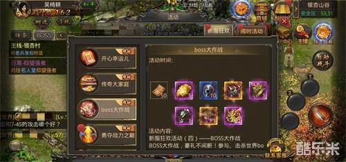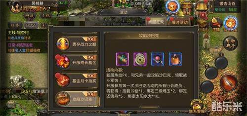 4、BOSS大作战:开服活动期间击杀、参与击杀世界BOSS均有丰厚奖励赠送,更有复活特戒(限时)、诅咒特戒(限时)、奔雷(绑)等超级稀有的特殊装备和坐骑大奖哦