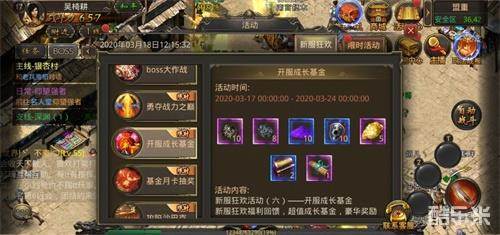 6、开服成长基金:开服活动期间玩家只需花费少量元宝即可享受成长基金带来的超值回馈,助力玩家登上战力之巅,畅享PK乐趣。