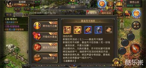 7、基金月卡抽奖:开服活动期间凡购买基金、月卡的玩家可获得绑定抽奖券*1,抽奖券在活动结束后开启,除了有概率获得大量奖励外,更有机会再获得一次基金或月卡,花一分钱,拿两份奖,简直不要太划算!