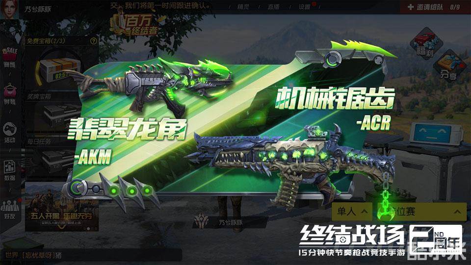 玩家可通过抽取枪械补给获得两款枪械外观,其中包括ACR外观“机械锯齿”与AKM外观“翡翠龙角”。机械锯齿外表充满冷兵刃暴力之美,在火力之外更向敌人展现了“锯齿”的恐怖感,而翡翠龙角的枪身设计更为精致繁杂,部分模仿了龙角的鳞片构造,结合翡翠光泽显得灵气逼人,仿佛注入了真龙之力。