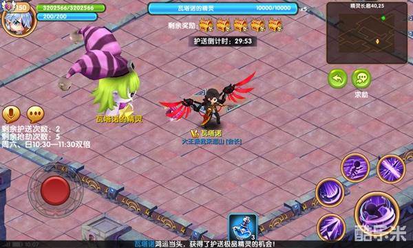 天下熙熙皆为利来,天下攘攘皆为利往。有人运镖,自然有人劫镖。每次护送最多可以被其他玩家抢劫3次,每次损失奖励的20%,对精灵当前血量造成最后一击的玩家可以获得奖励。这个时候你就可以通过屏幕右上方的按钮向公会成员救助,协助你一同运送镖物。