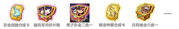 2、「欢乐银币」可以兑换:彩金翅膀合成卡、璇玑军师碎片箱、墨子彩金二选一、兵符暗金六选一、暗金神翼合成卡等。