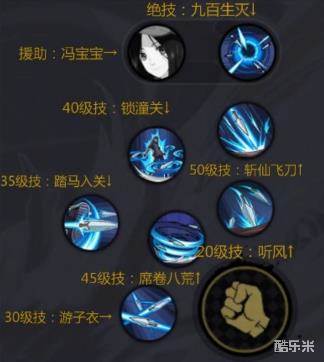 听风、游子衣、踏马入关、锁潼关、席卷八荒、斩仙飞刀和大招九百生灭